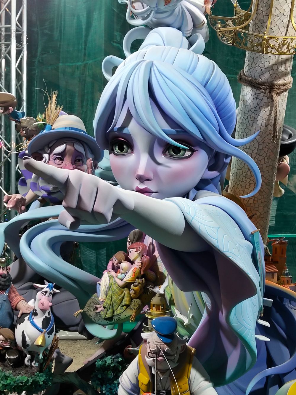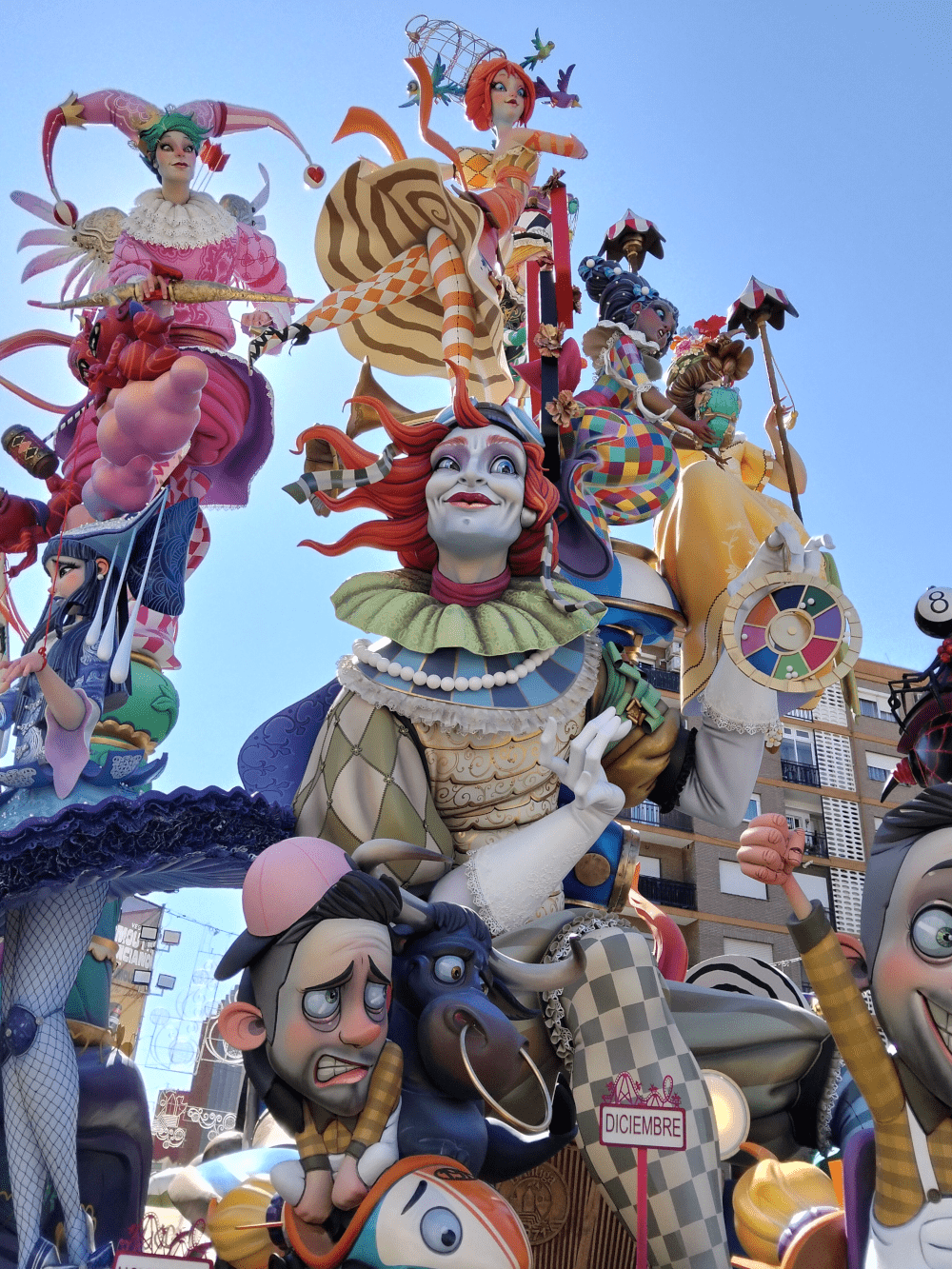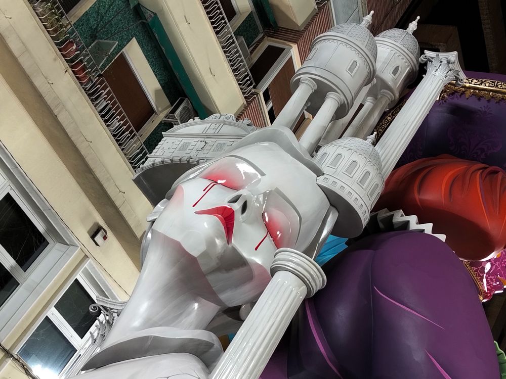 Sin embargo, una de las fallas que más ha causado sensación en directo ha sido “Bestial” de La Nova d’Orriols en 1ª A de la empresa que debutó el año pasado junto al parque de Benicalap, Imagine creative projects. El mimetismo y verismo en los personajes de series, libros y películas relacionadas con la mitología escandinava que han sido referencia en los últimos veinte años estuvieron muy logrados. La escena más imaginativa y conseguida también en fallas mayores para nosotros ha sido la de Vicente Martínez en Espartero. Justo en su parte dorsal. La muerte de varios artisTas falleros fusilados por las falleras mayores y sus iconografías siguiendo el cuadro goyesco de los fusilamientos del 2 de mayo. Impactante y 100% descriptivo. También han existido rostros estéticos maravillosos en estas fiestas con la dama de la noche de la Plaza del Pilar, Onírica de Santaeulalia en Sueca, la india de Indiotades de Palacio i Serra en el Mercado central, el payaso de la escena frontal de L’Antiga de Campanar por Josué Beitia. La joven payasa de Enric Andrés en Serra Martés, Chaplin en la Plaza del Ayuntamiento de Vicente Llacer y Alejandro Santaeulalia….