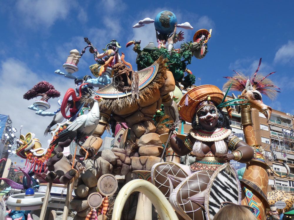También la figura del payaso e insistiendo en su protagonismo escénico, hará que su movimiento en diagonal, adquiera un mayor vigor en la falla. Con esto nos queremos referir que desde abajo, la falla cobra vida para transmitírselo al área superior. Eso sí, a priori…., porque toda esta comunicación habrá qué observar en a calle si funciona ya que nuestro personaje circense parece romper a propósito el movimiento natural del elenco de metáforas de la falla. Muy interesante pues, la composición pero también arriesgada.