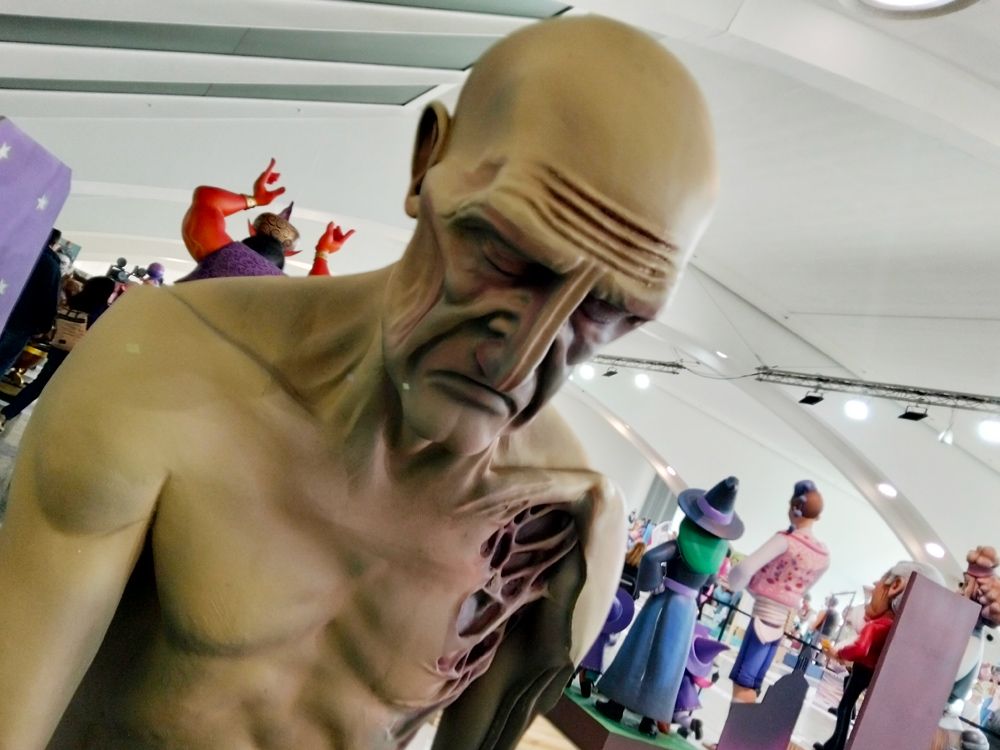 Once años lleva la exposición dela Sala de las arquerías del Museo de las ciencias. Lugar amplio, perfectamente espacioso, funcional… pero sin taquillas con presencia humana. Tienes tres posibilidades para ir y comprar la entrada, vía online www.cac.es; vía máquinas (incluye solo un par en efectivo) y vía cola de toda la vida (serpiente humana) para entrar a través de los ordenadores e impresoras de los asistentes justo antes de entrar en la sala. Cuando consigues el billete y con el código Qr, al final de tu recorrido, podrás votar a solo un ninot de falla mayor y solo un ninot de falla infantil. Ojo, de los casi 800 que esxisten… Casi nada. El que más números o votos ha recogido digitalmente del público, meses después el ninot ganador entrará a formar parte del abigarrado Museo fallero de Monteolivete, sito allí desde 1971.
