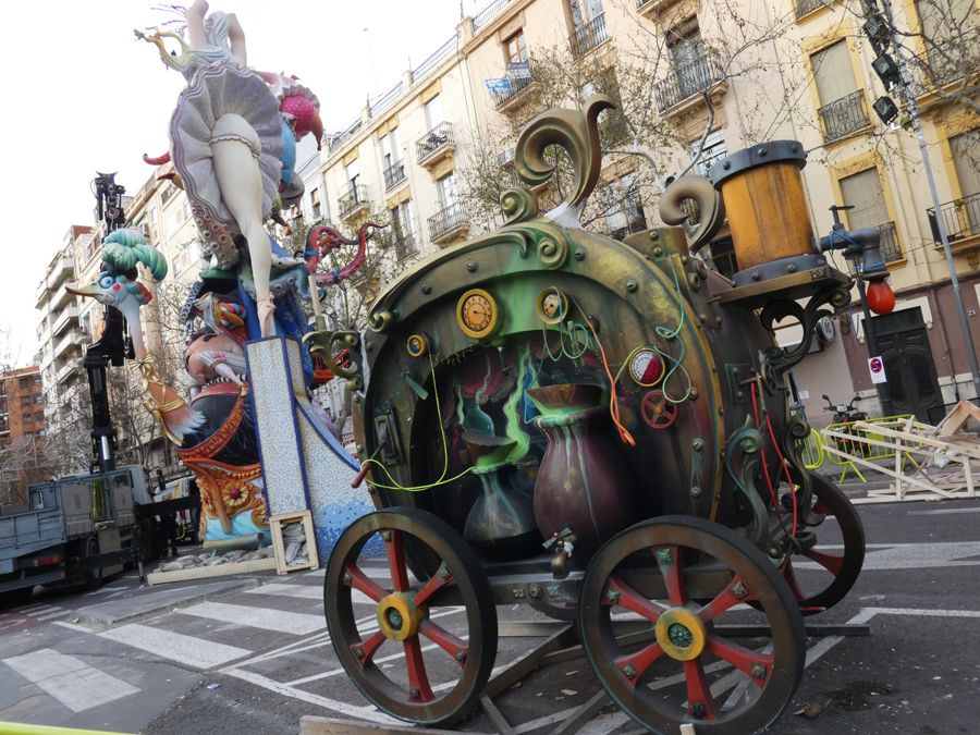 – Observaremos las fallas clásicas del barrio de Russafa como MercaT de Russafa, Clero, Cubas, Sueca, Pere, Reino… donde estarán preparando los artisTas las «últimas pinceladas» plástica y temáticamente la escenografía de la falla infantil.